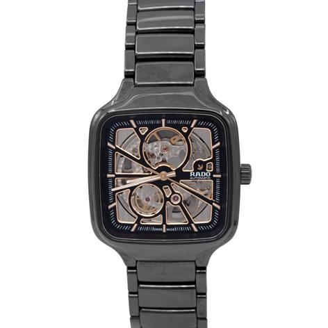 reloj Para caballero “raDo” *true square* referencIa r27086162 y/o 734.6086.3 caja 38x48 mm y Pulso cerámIca negra, carátula esqueletIzaDa, sIn cIfras, mov aut, serIe 16557xxx, calIbre c07 631+, joyas 25, gramos 117.2, eDo De cons: satIsfactorIo $16,000