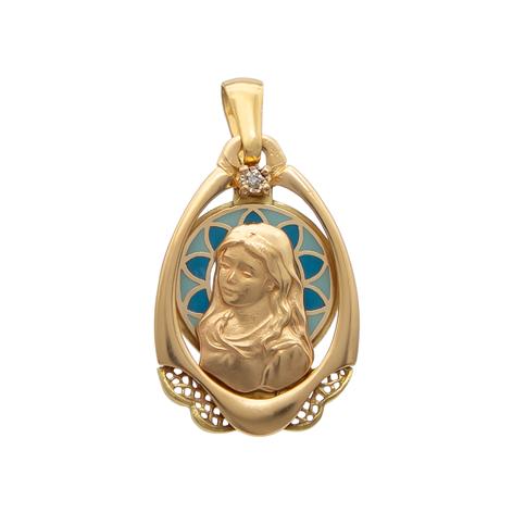 DIje motIvo Imagen De Dama confeccIonaDo en oro amarIllo 18k, 30x37 mm, con esmalte, gramos 10.7, calIDaD y Pesos aProxImaDos