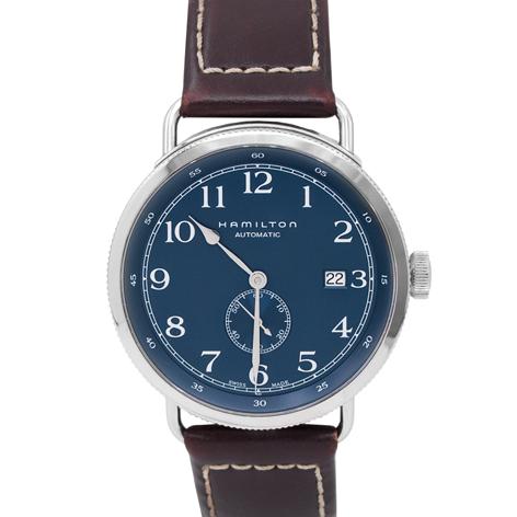 reloj Para caballero “HamIlton” *kHakI navy PIoneer* referencIa H78455543 caja 40 mm en acero, Pulso PIel, carátula azul, números arábIgos, mov aut, comPlIcacIones: fecHaDor, esfera subsIDIarIa, serIe aa0xxx, calIbre 2895-2, joyas 27, gramos 75.4, eDo De cons: satIsfactorIo