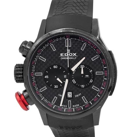 reloj Para caballero “eDox” *cHronorally* referencIa 10302 caja 45 mm en acero PvD negro, Pulso caucHo, carátula negra, sIn cIfras, mov cuarzo, comPlIcacIones: fecHaDor, cronógrafo, serIe 599xxx, calIbre. 5021 D joyas 10, gramos 144.1, (Detalle en caja) eDo De cons: satIsfactorIo