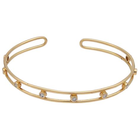Pulsera De arIllo Para Dama confeccIonaDa en oro amarIllo 18k, con brIllantes melee 0.45 ctw, cms 17.0, gramos 9.9, calIDaD y Pesos aProxImaDos