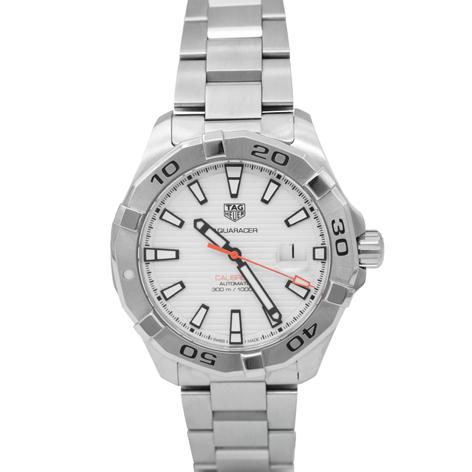 reloj Para caballero “tag Heuer” *aquarecer* referencIa way2013.ba0927 cIrca 2023 caja 43 mm y Pulso en acero carátula blanca con guIllocHe, sIn cIfras, movImIento aut, comPlIcacIón; fecHaDor, serIe rqv3xxx, calIbre 5 y 2824-2, joyas 25, gramos 208.4, eDo De cons: satIsfactorIo