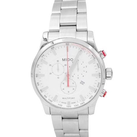 reloj Para caballero “mIDo” *multIfort* ref m005.417.11.031.00 caja 42 mm y Pulso en acero, carátula blanca, sIn cIfras, mov cuarzo, comPlIcacIones: fecHaDor, cronógrafo, serIe 16ja0258xxx, calIbre g15.211, joyas 6, gramos 178.7, eDo De cons: satIsfactorIo
