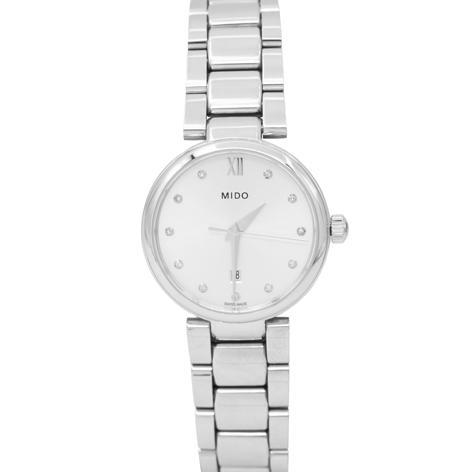 reloj Para Dama “mIDo” *baroncellI Donna* ref m022.210.11.036.00 caja 29 mm y Pulso acero, carátula PlateaDa, DIamantes en InDIcaDores, mov cuarzo, comPlIcacIones: fecHaDor, serIe wnktHrxxx, calIbre 956.112, joyas 7, gramos 74.3 eDo De cons: satIsfactorIo