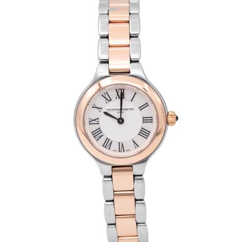 reloj Para Dama “freDerIque constant” *classIc DelIgtH* referencIa fc-200m1er32b caja 28 mm y Pulso en acero y acero PvD rosa, carátula PlateaDa con guIllocHe, números romanos, mov cuarzo, serIe 3224xxx, calIbre 782, joyas 5, gramos 58.5, (Detalle De cHaPaDo en Pulso) eDo De cons: satIsfactorIo