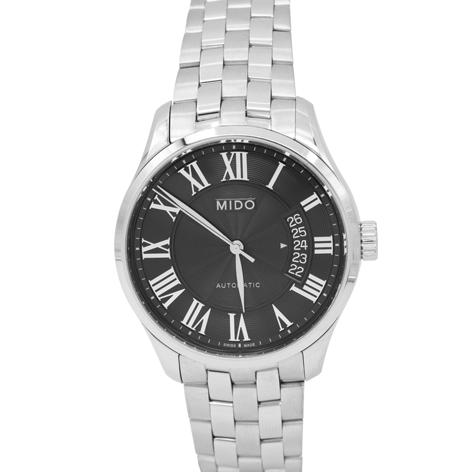 reloj Para caballero mIDo” *belluna* referencIa m024.407.11.053.00 caja 40 mm y Pulso en acero, carátula grIs con guIllocHe, números romanos, mov aut, comPlIcacIones: fecHaDor, serIe rvoneuxxx, calIbre c07.611, joyas 25, gramos 126.8, eDo De cons: satIsfactorIo