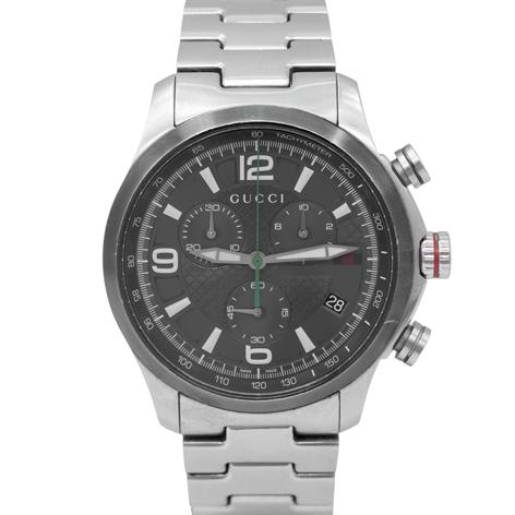 reloj Para caballero “guccI” ref ya126238 caja 46 mm y Pulso acero, carátula grIs con InDIcaDores mIxtos, mov cuarzo, comPlIcacIones: cronógrafo, fecHaDor, eDo De cons:satIsfactorIo