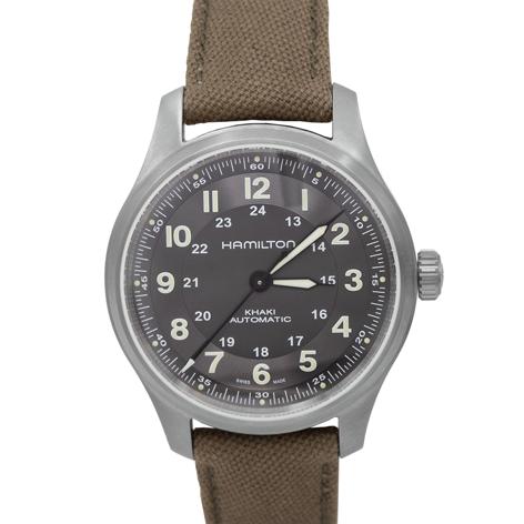 reloj Para caballero “HamIlton” *kHakI fIelD* referencIa H70545550 caja 42 mm en tItanIo, Pulso PIel y textIl, carátula grIs con guIllocHe, números arábIgos, mov aut, serIe t9zmbfxxx, calIbre H-10 y c07.611+, joyas 25, gramos 62.3, eDo De cons:bueno