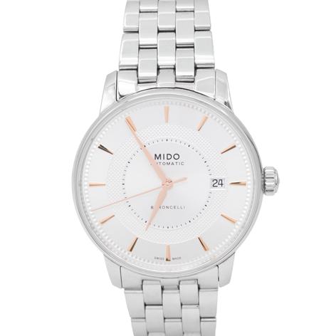 reloj Para Dama “mIDo” *baroncellI II* referencIa m7600.4.21.1 caja 29 mm y Pulso en acero carátula PlateaDa con guIllocHe, números romanos, mov aut, serIe 12bg0577xxx, calIbre 2671 joyas 25 gramos 73.5, eDo De cons: satIsfactorIo