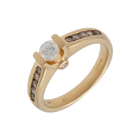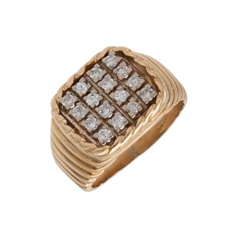 argolla Para caballero confeccIonaDo en oro amarIllo 14k, con brIllantes 0.65 ctw, (5x0.13) I, l-o, meD. 10, gramos 12.8, (faltan algunas PIeDras) calIDaD y Pesos aProxImaDos