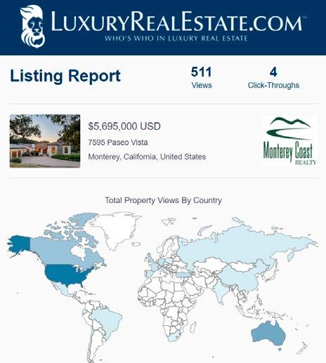 All homes listed over $1M with Monterey Coast Realty are marketed on LuxuryRealEstate.com—The Webby award-winning luxury real estate website with most multi-million dollar properties.