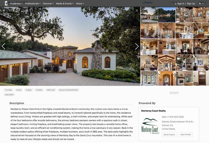 • As a member of Who’s Who in Luxury Real Estate, Monterey Coast Realty partners with over 450 luxury boutiques in 60 countries across the globe.