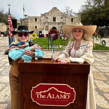 Rising at 4:00AM, LYN HOWARD and ELAINE COLLINGS met in the the Lobby of the Historic Menger Hotel with other SRT and DRT to carry over the beautiful Memorial Wreaths that Chapters donate for the DAWN AT THEALAMOCeremony