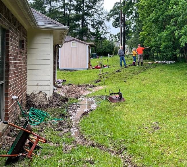 team,whobroughtshovels andsandbagstodeflectthe waters away from the house. They were able to dig channels to help divert the waters built up against thehouse,andlesseningthe damagealreadycaused.