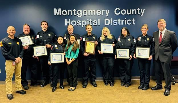 Recipients of this award are Alarm Medic II Kellie Gonzalez, In-Charge ParamedicDavidIkard,InCharge Paramedic Jeremy Cattoor, Captain Kelsie Adams, District Chief April Currie, Captain of QualityImprovementBrad Ward and Deputy Chief TamellaWelch.