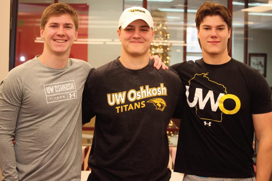 This winter we congratulated senior Broncos on their commitments to continue their academic and athletic pursuits at the collegiate level. Front l to r: Haley Doucet* (Volleyball, St. Ambrose University), Caden Phengkeokaisone (Football, Lake Forest College), Taylor Utrata (Softball, Parksie); Back l to r: Jonathan Goff (Football/Track, North Central College), Evan Raczkowski (Football, Lake Forest College) and Mike Wind (Football, Wisconsin OshKosh)