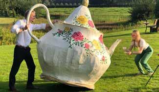In de theetuin kun je jezelf voorzien van diverse soorten koffie, verse losse thee, frisdrank, alcoholvrije drankjes en heerlijk huisgemaakt gebak, cake, koekjes en kleine chocolade lekkernijen. Bij regenachtig weer biedt een plekje op de veranda van de gezellig ingerichte pipowagen, vol met vintage en brocante, een fijne beschutting. Of kom tot rust in ‘t Theehuys, een sfeervolle ruimte waar oude materialen weer een nieuw leven hebben gekregen en waar je zomer én winter heerlijk geniet van koffie, thee & lekkers.