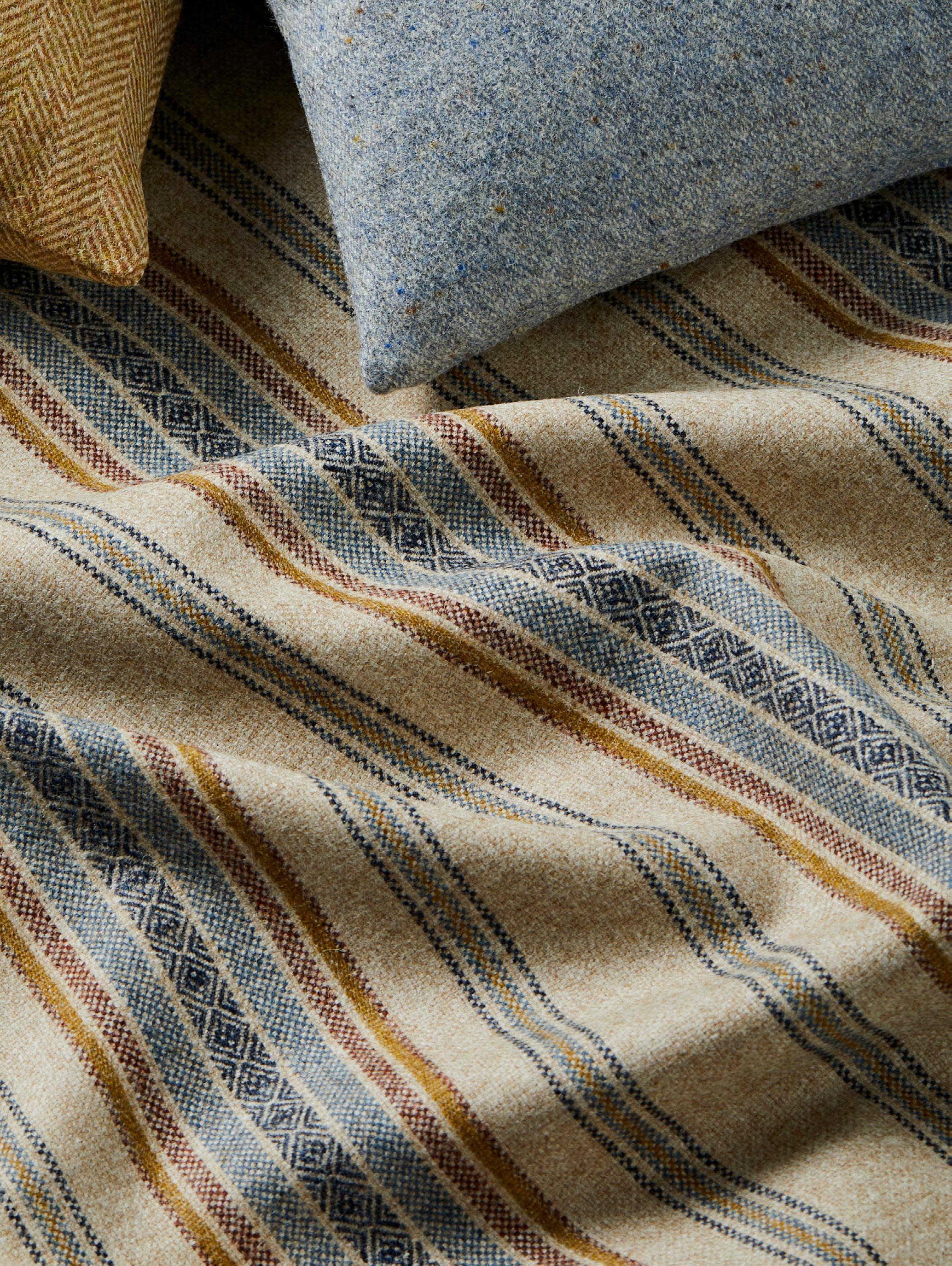 Six designs are presented across twenty fabrics, utilising rich accent colours that pair beautifully with the earthy hues found in the ground shades - each woven into a medley of timeless stripe and check patterns.