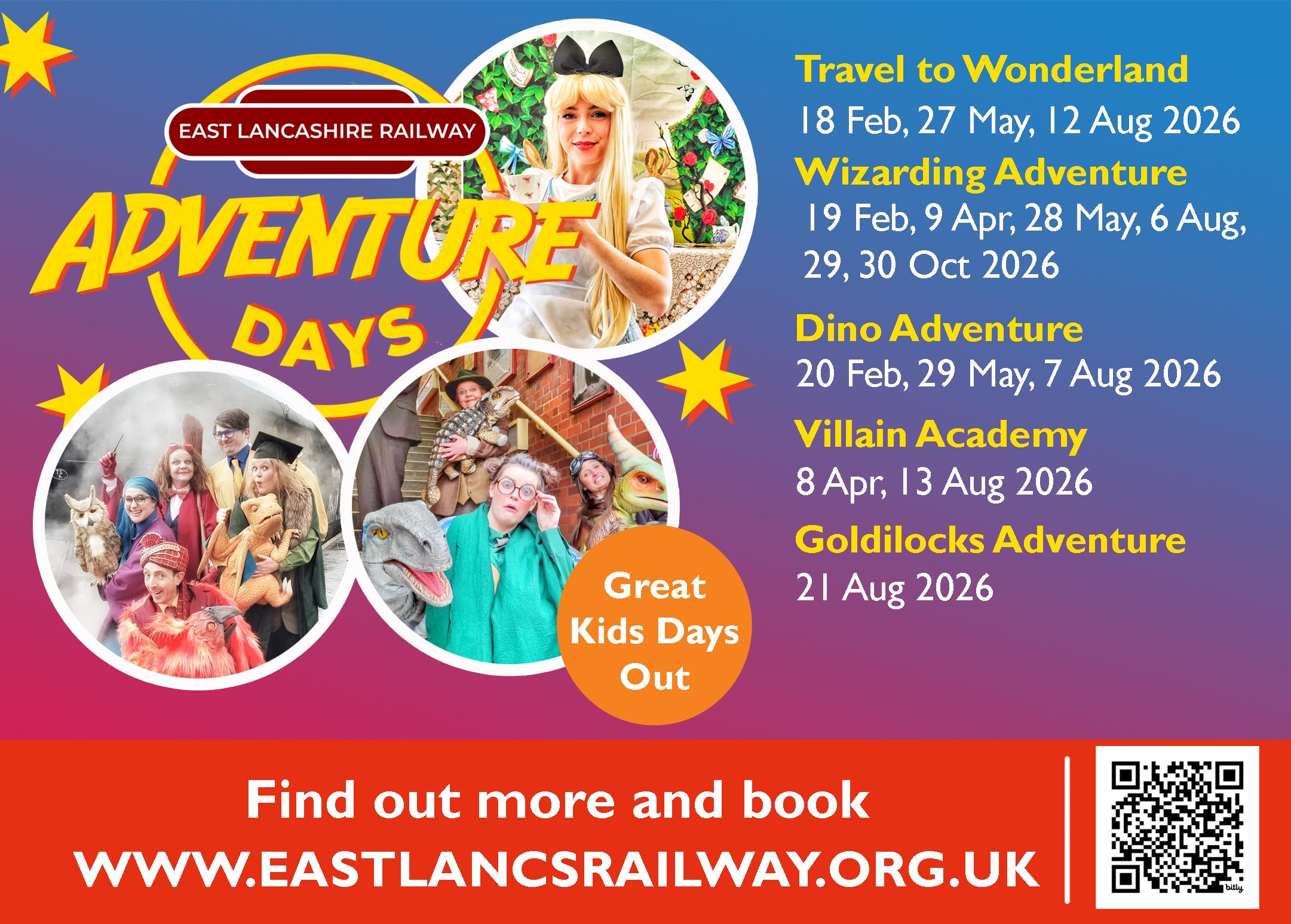 It’s full steam ahead this half term at the East Lancashire Railway. Get your school holiday on track with East Lancashire Railway’s incredible lineup of events! Visit with Alice and travel to Wonderland on Wednesday 18th February. Cast some spells with the wand wavers of the Wizard Academy on Thursday 19th February. And sink your teeth into a roar-some day out with the dinky dinos of the Dinosaur Adventure on Friday 20th February.