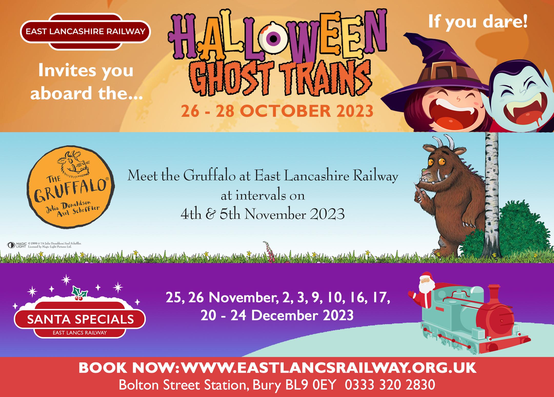 Creeps, candy and costumes! Are you brave enough to board the East Lancashire Railway’s spooky Halloween Ghost Train? From the 26th-28th October, join the freaky family fun aboard the “Scream Train” and help the monster squad vanquish the ghouls and ghosts. There will be tricks and treats galore, and your new monstrous friends will include a fang-tastically friendly vampire, a chatty zombie, mad Dr Frankenburger, a snappy plant creature and more oddballs. Be sure not to miss the all-singing, all-dancing “Skeletonettes” on the platform, and to show off your best fancy dress! Book now online. W: www.eastlancsrailway.org.uk