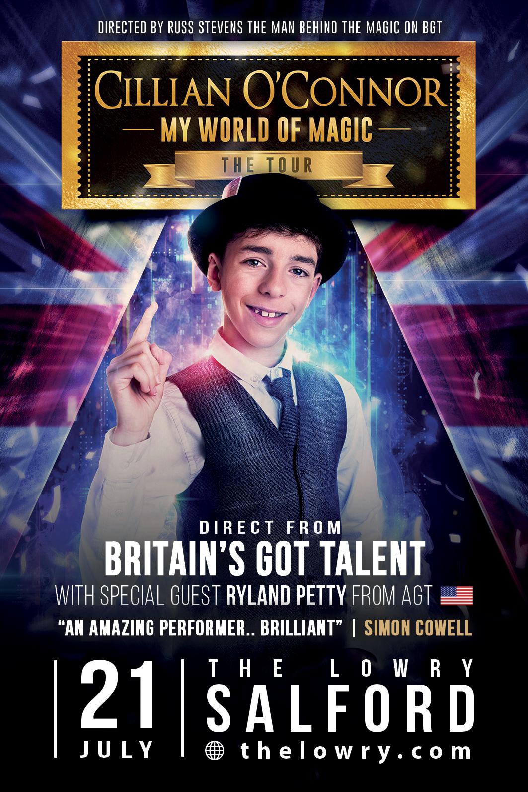 Described by Simon Cowell as ‘an incredible talent’, Cillian reached the Britain’s Got Talent final in 2023 where he finished in the top three. His performances online have now been some of the most watched of the entire series, reaching over 500 million views in just a few weeks. The show features special guest Ryland Petty from America’s Got Talent. Cillian promises to enchant and amaze audiences across the UK and Ireland with a show for the entire family, for all ages. See Cillian at The Lowry, Salford on Sunday 21st July. “I’m super excited to go on my first ever tour and meet the audiences who supported me on Britain’s Got Talent!” Buy tickets online at www.thelowry.com or www.cilliansmagic.com