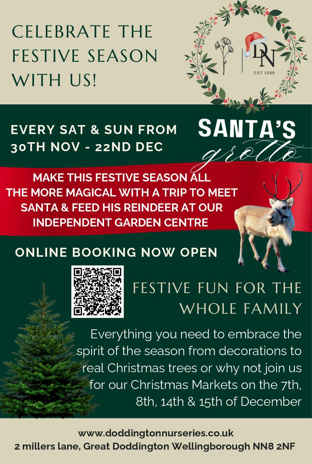 It’s nearing that magical time of year again and Doddington’s enchanting Santa’s Grotto is returning to this family-run independent garden centre near Wellingborough. Imagine the look on your little ones’ faces as they meet Santa, share their wishes, and receive a gift from the big man himself. It’s the perfect way to add some extra sparkle to your holiday season. This year you can also make a trip over to feed his reindeer too! Grotto tickets cost £12.50 per child and it will be open over four weekends leading up to Christmas, from 30th November right up until Sunday 22nd December. Early booking is recommended to reserve your ideal time slot!