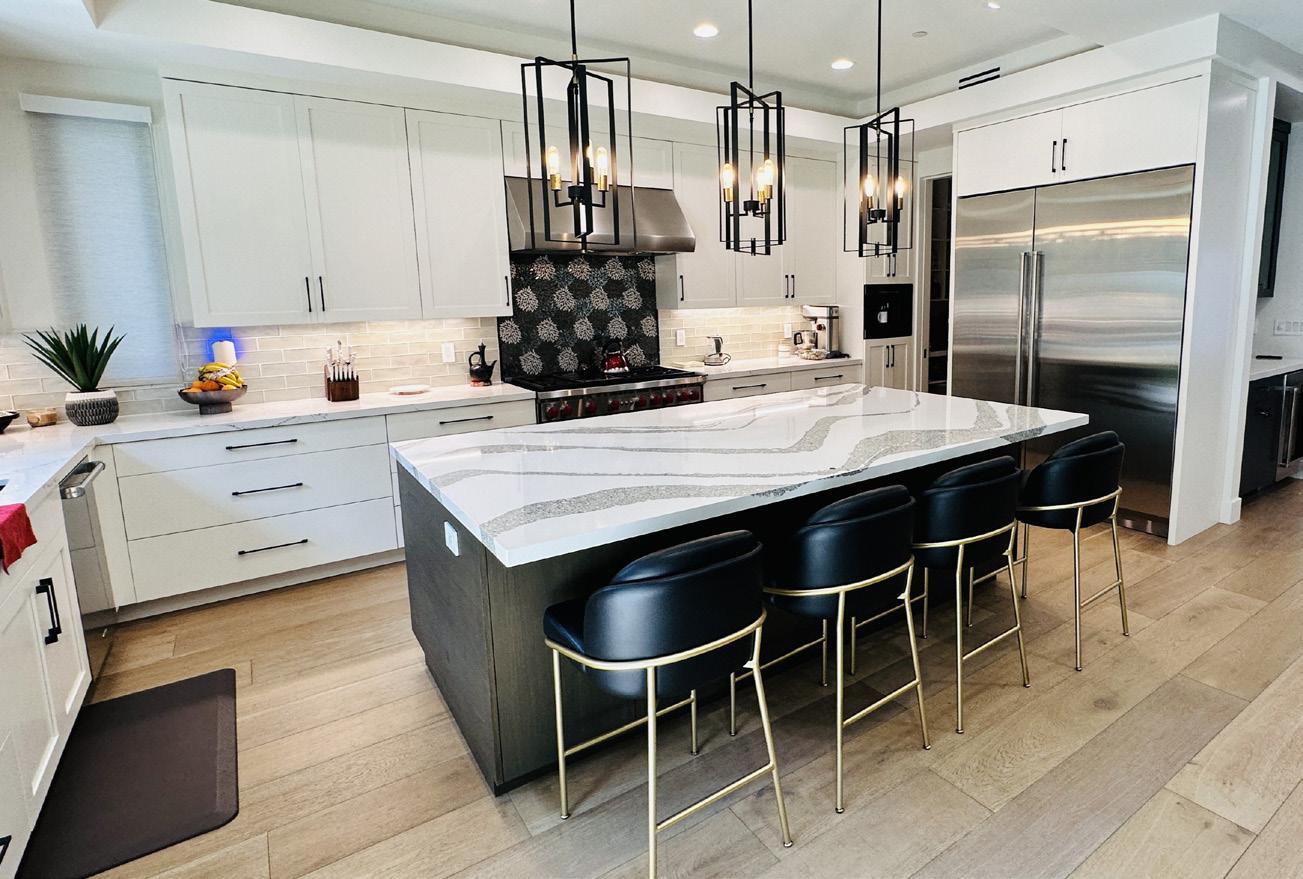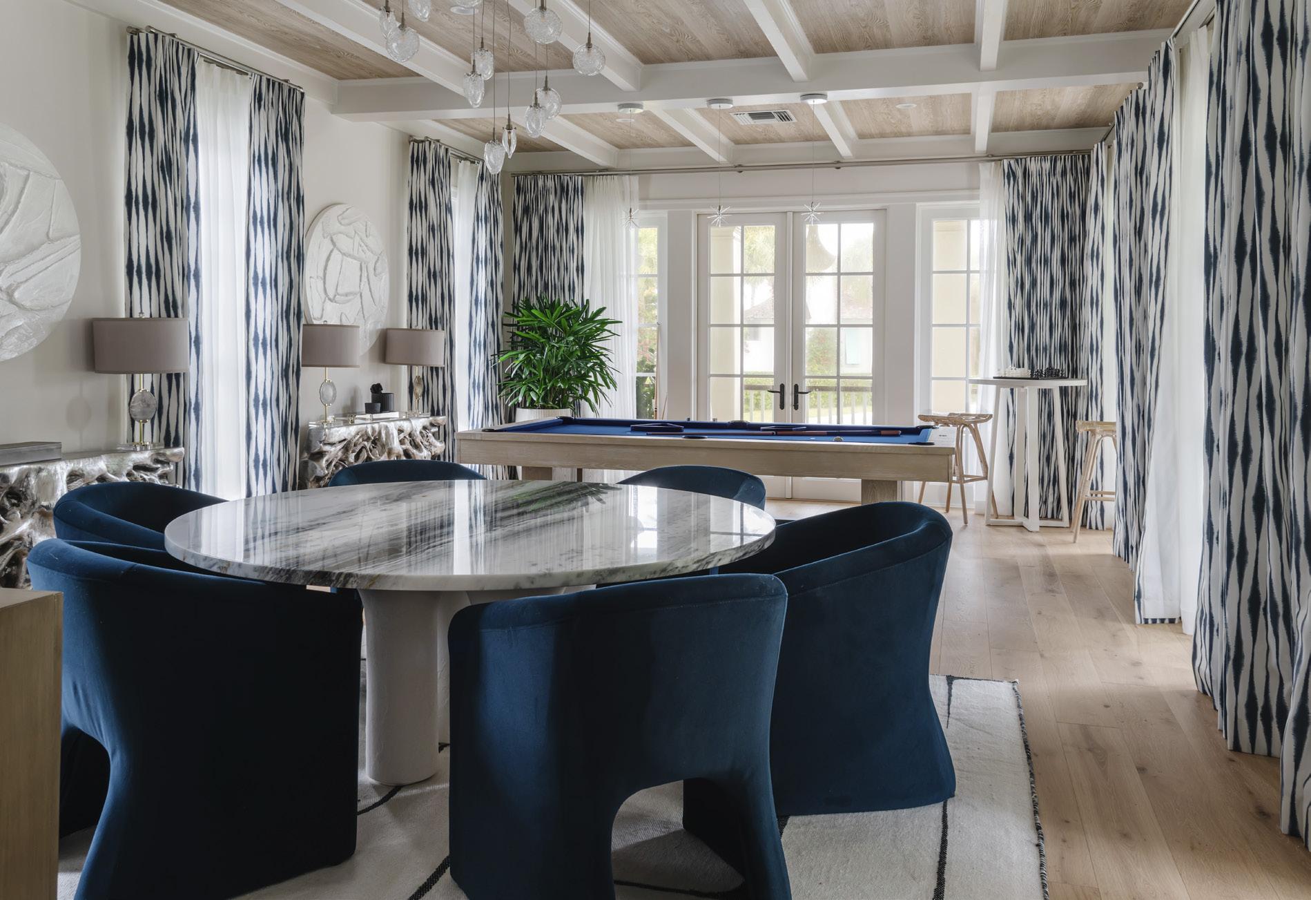 It begins with honoring the architecture of the home. The foundation—scale, proportion, millwork, cabinetry and core furnishings—should feel timeless and rooted in the character of the space. I introduce trends in ways that feel layered rather than dominant. Statement lighting, textiles, color-forward fabrics and wallcoverings bring personality and a sense of the present into a home without compromising longevity. These elements can be updated over time, allowing the home to evolve with intention. When classic design is complemented by curated, of-themoment details, a home feels fresh yet enduring.