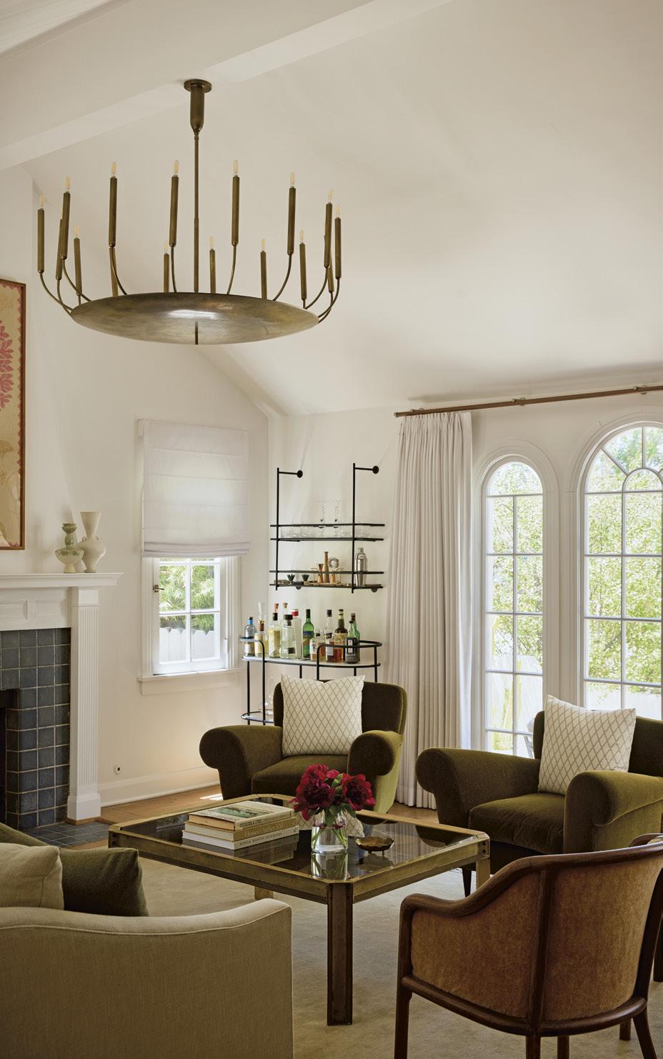 In the formal living room, we embraced the scale of the vaulted ceilings, allowing the volume to feel dramatic yet harmonious. A calm, soothing palette and subtle use of color softened the height of the space, while tailored furnishings and balanced proportions grounded the room with quiet sophistication.