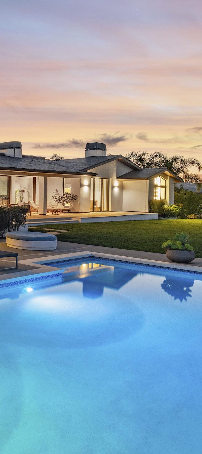 This property is an architectural triumph. The 9,400-squarefoot contemporary ranch home is nestled on a sprawling 54,732-square-foot lot with panoramic views. Its positioning was guided by two feng shui masters to ensure harmony with its environment, and natural materials abound. The sleek, contemporary kitchen is complemented by a separate entertainment kitchen with a pizza oven, a home theater and a wine cellar. The residence functions as a private sanctuary, offering five bedrooms and nine bathrooms. Wellness is central to the design, with a spa including sauna, steam room with rain shower, massage room and a soaking tub that transitions to an outdoor shower. A dedicated library/office is located in a separate barn. This estate prioritizes craftsmanship, history and the simple joy of a life well lived. Visit LuxuryonSaddleback.com for more.