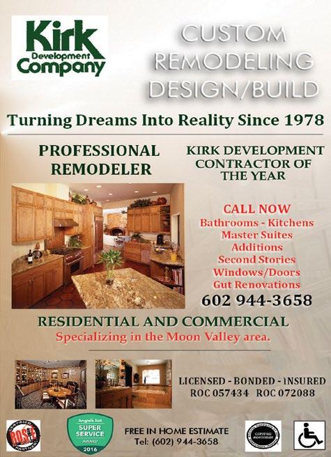 If you are looking for a licensed, bonded and insured contractor, call KIRK DEVELOPMENT for a free in home estimate at 602 944-3658.