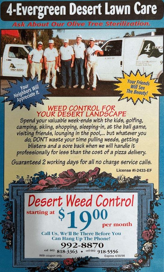 The Moon Valley Tattler is distributed monthly free of charge to Moon Valley area homes. Additional copies are distributed at rack locations. Content in full or part may not be reproduced without the written consent of the publisher. Opinions expressed by contributors are not necessarily the opinions of the publisher and do not constitute an endorsement of products or services. Publication of an ad does not constitute an endorsement. Business profiles are based on information supplied from advertisers. Readers are urged to verify. Articles and photographs can be submitted for use in future issues.