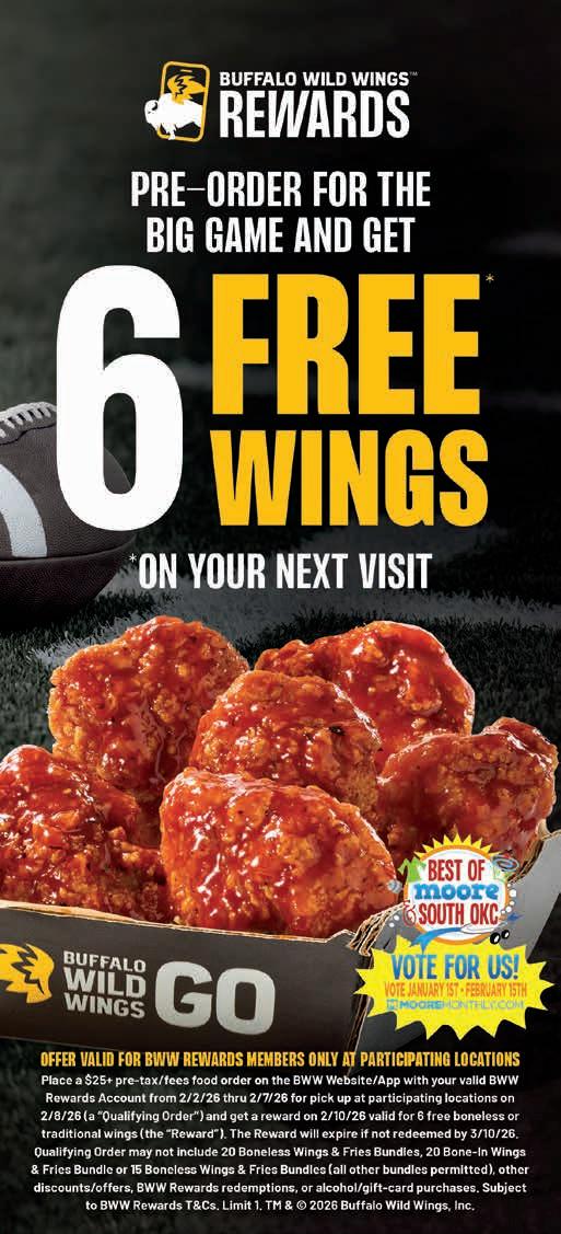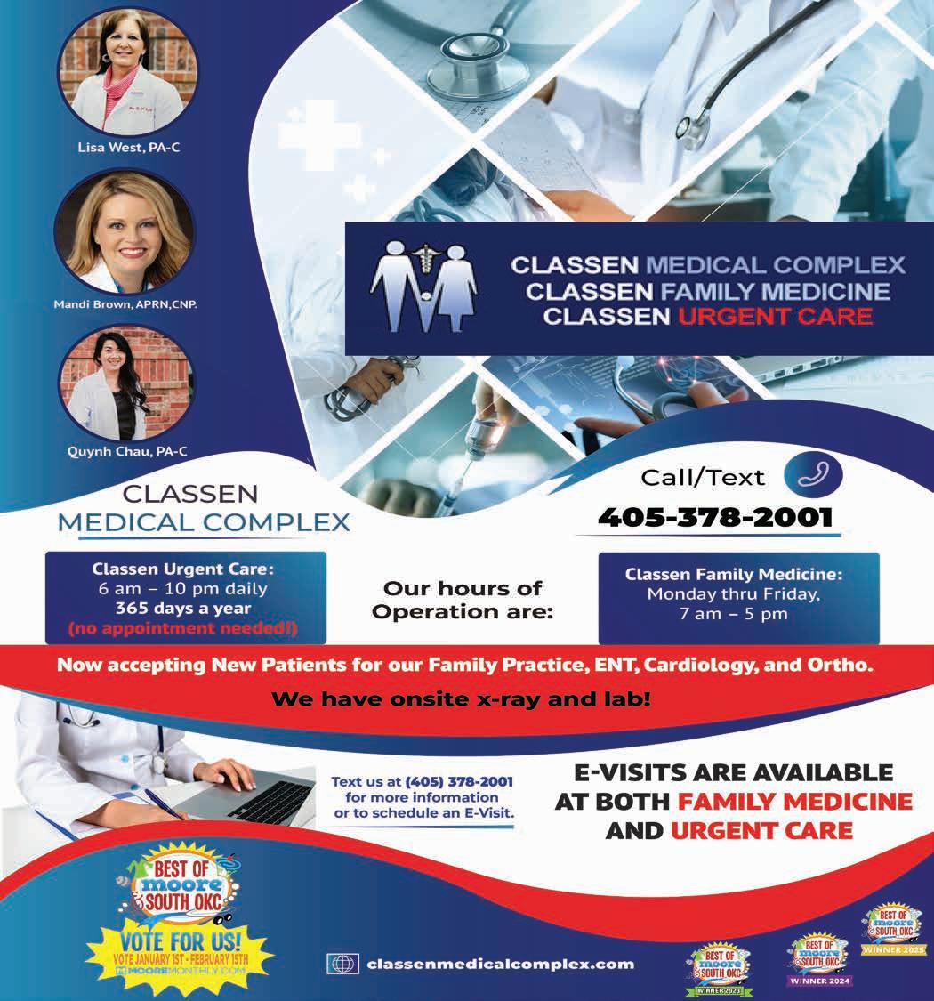 We’re excited about this new category and the talented folks who have submitted videos this year. Because it’s a new category, we were still accepting entries right up until the magazine went to press, so those entries will be posted on the MooreMonthly.com website on January 1st. Voting for the Best Vocal Talent category will have its own dedicated page on MooreMonthly.com, where voters can view the videos and vote for their favorite. The top three finalists in this category will perform live during the 2026 Best of Moore & South OKC Awards dinner at the Riverwind Casino in March.