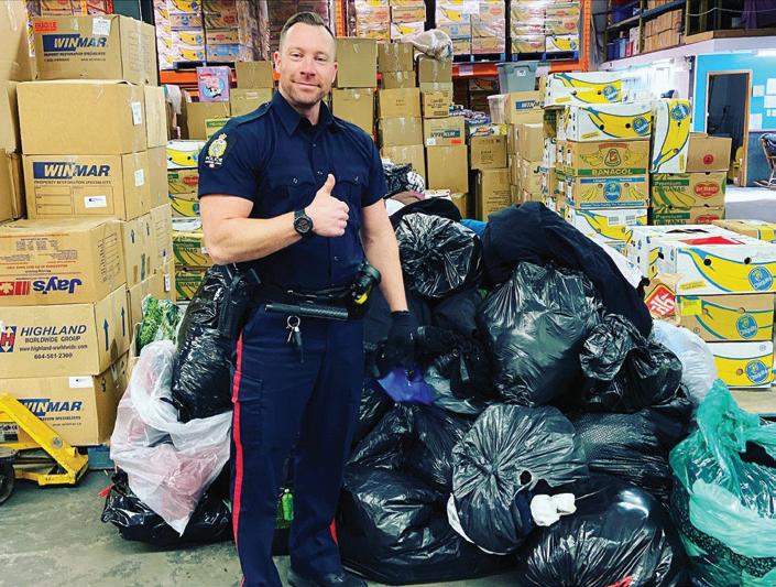 Const. Reggie Pawliw poses with the pile of clothing that the four emergency services organizations in Moose Jaw collected for the Salvation Army. Photos courtesy Moose Jaw Police Service Winter is in full swing are there are a num-ards in your home or workplace. During other fuel-burning appliances will be running more to keep buildings warm.