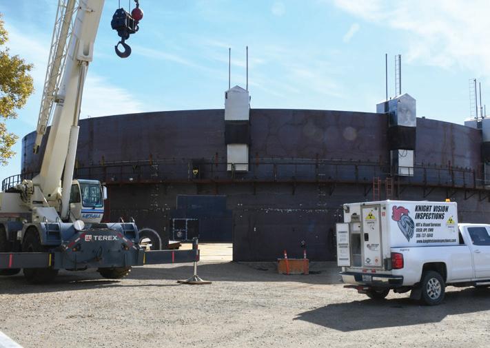 Contractors continue to work on the new 70-foot-tall oil storage tank that can hold 175,000 barrels. Photo by Jason G. Antonio