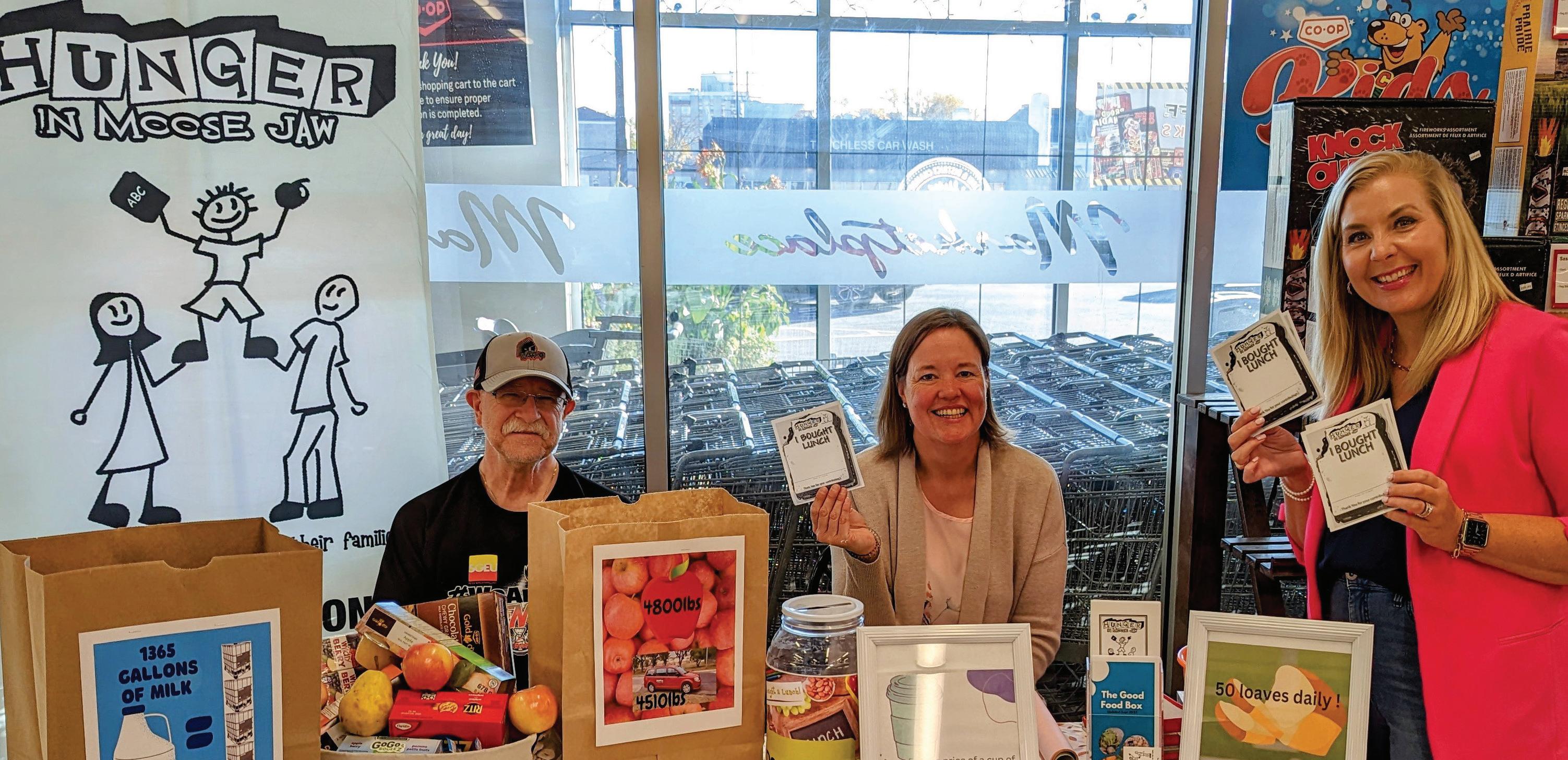 Hunger in Moose Jaw (HiMJ) kicked off its annual ‘I Bought a Lunch’ fundraising campaign on Oct. 14 with a table at the Moose Jaw Co-op. (l-r) HiMJ board member Brad Leidal, HiMJ executive director Sharla Sept, and Michaela Turner, the Co-op’s manager of marketing and community relations (photo by Gordon Edgar)