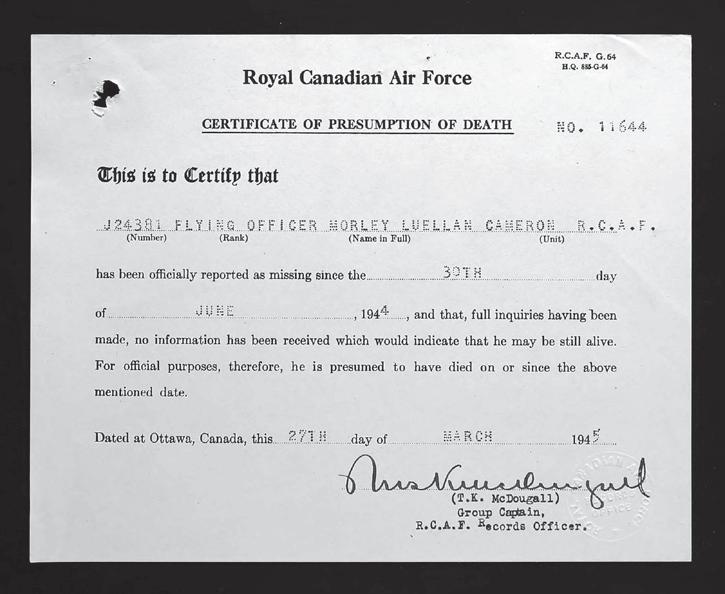As an RCAF airframe mechanic, Allen wrote to the wing commander asking on Aug. 7, 1944, saying only that it was assumed Morley was dead since his plane failed to return.