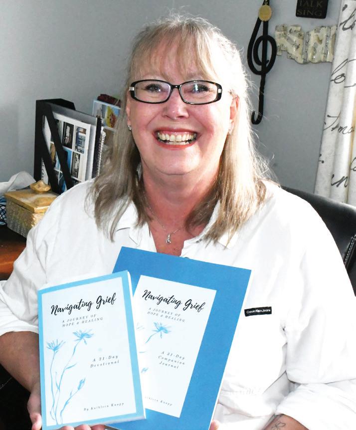 Kathleen Knapp, an author and motivational speaker, holds the devotional and journal she created to help people overcome grief. Photo by Jason G. Antonio