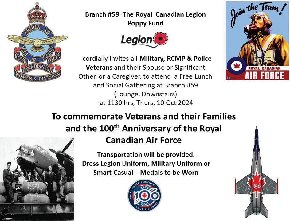 FIRST AND THIRD SUNDAY – Aerie meeting – 11:30 am FIRST AND THIRD TUESDAY – Ladies Auxiliary meeting - 7:00 pm DROP IN DARTS - Every Wednesday evening -starts September 4, 2024–continues until April, 2025 - $2.00 per person, draw for partners, starts at 7:00 pm. DROP IN CRIBBAGE - Every Monday evening -starts September 9, 2024–continues until April, 2025 - $2.00 per person, registration between 6:00 pm and 7:00 pm – play starts at 7:00 pm.