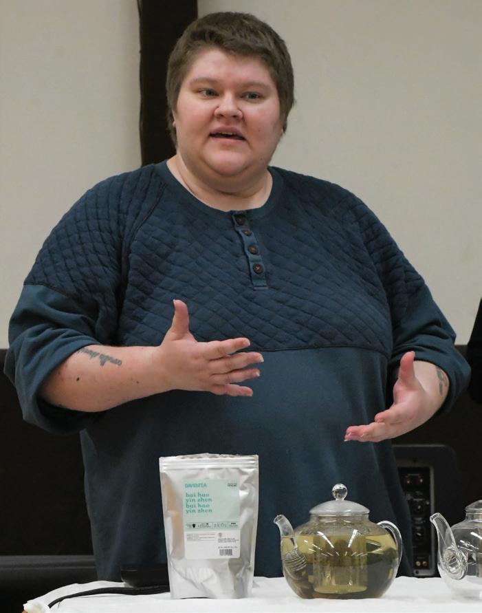 Event guest Kelly Miller — formerly of Eyebrow — from DAVIDsTEA in white tea called bai hao yin zhen. Photo by Jason G. Antonio