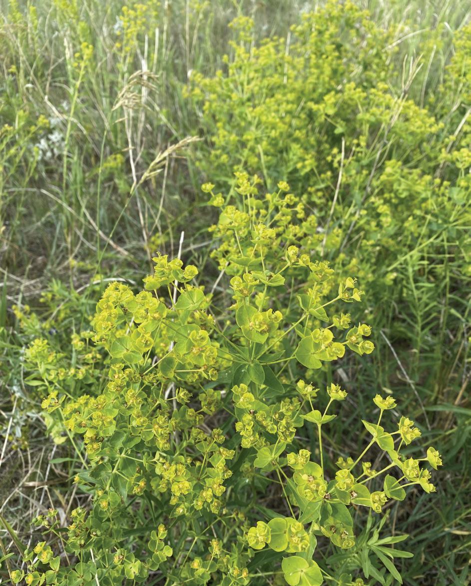 Leafy spurge might look harmless, but it is an invasive species that should be eliminated since it harms native plants. Photo courtesy Moose Jaw River Water Stewards