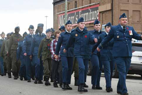 Cadets from various elements join the march from the Events Centre to the Royal Canadian Legion Branch No. 59 following the Remembrance Day ceremony. Photo by: Aaron Walker