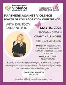 Moose Jaw Catholic Women’s League and the Regina Diocesan Catholic Women’s League executive are pleased to invite all women to the Annual Diocesan Convention on Saturday, May 3, 2025, at St. Joseph’s Parish in Moose Jaw. Register by April 18th by contacting the Convention Registrar at regina.diocesan.conv@gmail. com or 306-313-4509.