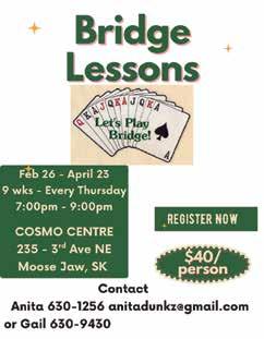 FIRST AND THIRD TUESDAY – Ladies Auxiliary meeting - 7:00 pm Western Development Museum; 50 Diefenbaker Drive, Moose Jaw. For more information, visit the museum’s website at WDM.ca/Moose-Jaw. Call 306-693-5989 or email ajones@wdm.ca