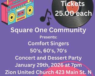 church. Tickets are $25 per per son, with proceeds directed to Square One Community’s Supportive Housing Program.