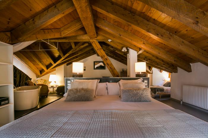 El pis superior és una suite oberta, un espai ampli sota teulada que resumeix bé l’esperit de la casa: acollidor, càlid, sense compartiments innecessaris. A l’exterior, un jardí permet allargar les estones quan el bon temps acompanya. A l’estiu, és un petit refugi. A l’hivern, un mirador silenciós.