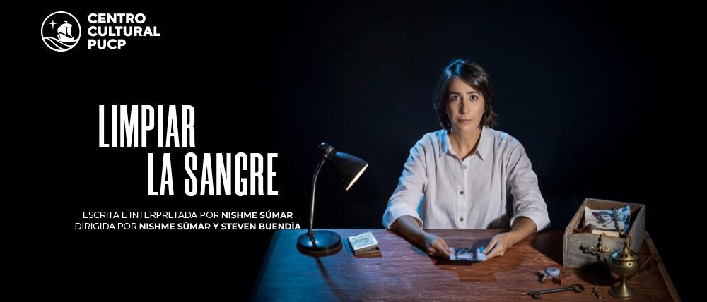 ElCentro Cultural de la Ponti ficia Universidad Católica, con el apoyo de la Fundación BBVA, pre senta el segundo monólogo de este semestre teatral: Limpiar la sangre. Este estreno mundial escrito y pro tagonizado por Nishme Súmar, es una obra de teatro de corte testimo nial que documenta y reflexiona so bre la herencia del silencio y la vio lencia de su familia de origen israelí palestino quienes fueron obligados a migrar por las sucesivas guerras en la zona.