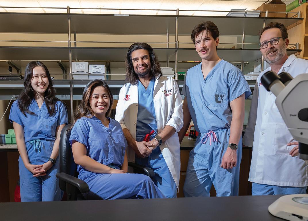 From left, glaucoma research fellows Charissa Tan, MD, and Lieu Nguyen Lowrie, MD, Ike Ahmed, MD, FRCSC, medical student Earl “Parker” Scott, and Ian F. Pitha, MD, PhD.