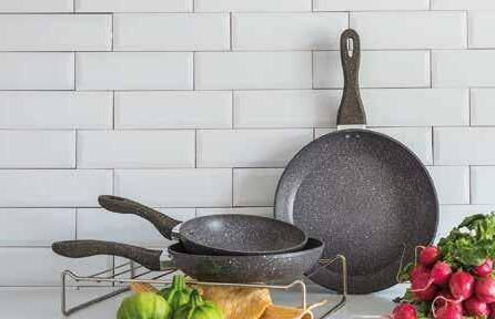 AG00009631 BATERIA LAZIO Bateria de 10 de cocina grosor 2.2 mm Olla 28 cms diámetro Olla 18 cms sartén 28 cms sartén 18 cms cacerola 16 cms Jarro de 12 cms espátula 01 Negro Q.719 AG00007019 JUEGO DE SARTENES TERRA Juego de 3 piezas: 3 sartenes de 20, 24 y 28 cm, recubrimiento de mármol, 4.0 mm de espesor, mangos ergonómicos resistentes al calor 02 Café Q.359 JUEGO DE SARTENES AG00002513 PI003SSMA 3 sartenes Tamaños: 20, 24 y 28 cm, recubrimiento de marmol, 4.0 mm de espesor, mangos ergonómicos resistentes al calor 03 Azul Q.35952