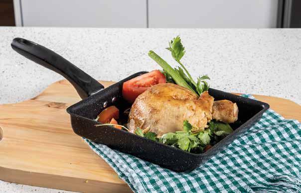 AG00007018 BATERÍA MILAN 1 olla, 1 cacerola, 1 wok, 1 sartén y 3 tapas de vidrio. Recubrimiento de mármol antiadherente de 2.5 mm espesor, mangos ergonómicos resistentes al calor. 03 Azul Q.669 Recubrimiento antiadherente de teflón de 2.5 mm de espesor MD43116 SARTÉN PANQUEQUERO Y CREPERO PIOO30TN Medida: 30 cm. 01 Negro Q.119 WOK CHINA Sartén Wok 28cm con tapadera de vidrio 02 Café Q.239 JUEGO DE SARTENES BOLONIA AG00001919 2.2 mm de grosor • Recubrimiento antiadherente de 1.1 mm • Mango resistente al calor • Diámetro: 18 cm, 22 cm y 26 cm 22 Amarillo 23 Verde Q. 259 51