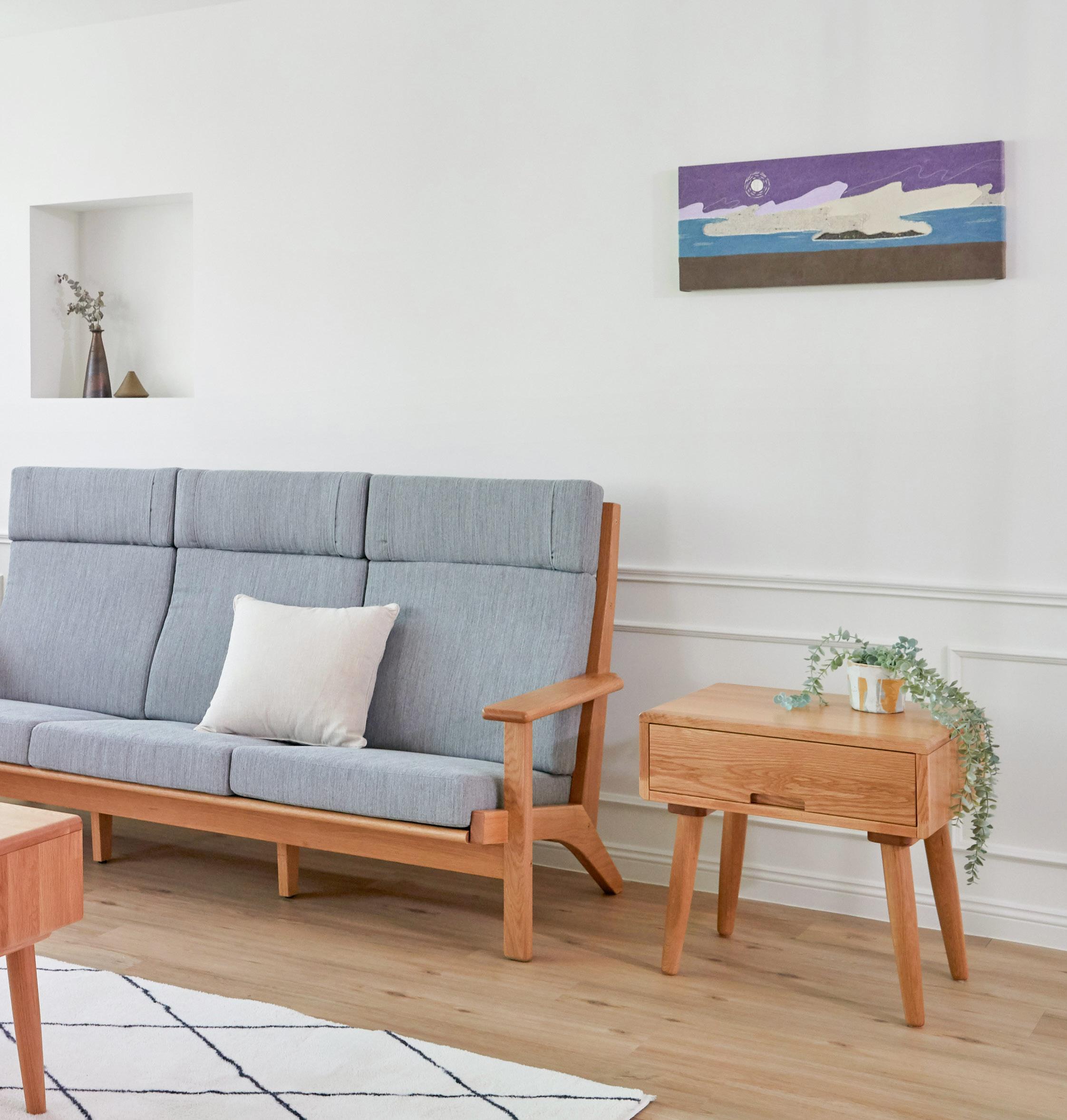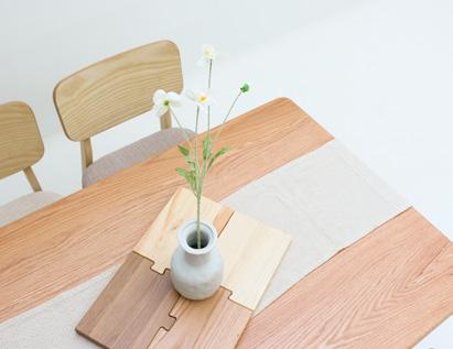 清潔與保養 相互了解,方能長久陪伴 木家具特性 森手家具平時不需特別保養,請放鬆自在的使 用:)家具表面可以微濕的抹布擦拭灰塵,沾到 油漬處亦可搭配中性清潔劑使用,盡可能保持 家具乾燥。若家具挑選使用森手 PU 漆裝,以 稀釋酒精或次氯酸水沾在乾淨棉布上消毒清潔 是沒問題的! * 勿使用菜瓜布刷洗家具表面 * 選擇彩色系列塗裝不可使用酒精 MORiii 照片提供:大城小室空間設計 提醒與叮嚀 實木家具會隨著環境光照、空氣中鹽分等產生氧 化現象,時間久後會使得顏色變深。 木頭會隨著季節溫度變化而熱漲冷縮,有時會產 生「嘎嘎」的聲響,是自然的正常現象,別被嚇 著囉!另外森手家具為「室內家具」,請避免置 於室外或浴室內。 • 橡木含單寧酸,遇水容易產生化學變化使表 面發黑,其現象並非發霉,不影響使用,建議 桌面使用後儘速擦拭乾淨保持乾燥。 • 木製品本身有調節溼氣的作用,但吸收過多